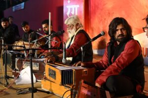 The Satvani singing presented by Rajeev Singh and his team immersed the listeners in Sufi and folk hues. The performance began with the composition “Saanson Ki Mala…” followed by soulful renditions like “Man Lago Mero Yaar Fakiri Mein…”, “Kahe Ko Byahi Bides…”, “Jugni Kehti Ya…” and “Duniya Mein Badshah Hai Woh Bhi Hai Aadmi Muflison…” filling the auditorium with musical devotion. The lead vocals were performed by Rajeev Singh, accompanied by Aman Malik and Rohit Wankhede. Hanif Hussain played the sarangi, Tanishq Thakur the dholak, Shahnawaz the tabla, Iqbal Khan the octopad, and Shahid Masoom the keyboard, making the presentation vibrant and impactful.