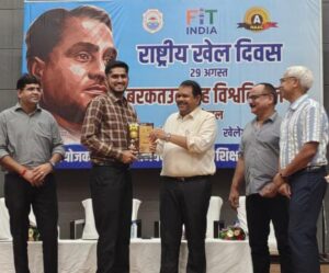 CNN Central News & Network–ITDC India Epress/ITDC News Bhopal: The Department of Physical Education at Barkatullah University organized the first day of National Sports Day to pay tribute to Major Dhyan Chand. Discussions were held on his personality and achievements. Participants engaged in activities including Pittu (traditional Indian game) competitions, aerobics, and other physical exercises. Under the Fit India initiative, students took a pledge through an oath-taking session.