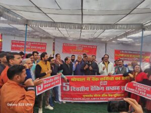 Also present on the stage were senior office-bearers of UFBU and the All India Bank Officers’ Confederation, including Subin Sinha, President of Madhya Pradesh, V.K. Sharma, Nazir Quraishi, Nirbhay Singh, Sanjay Kudesia, Sunil Singh, Deepak Ratan Sharma, and Deepak Nair.