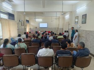 During the program, Dr. Bhavishya Rathore, Physician at Mandal Railway Hospital, Bhopal, provided detailed information about CPR to the attendees using a PowerPoint presentation. The team from Chirayu Hospital conducted hands-on training for the participants through PowerPoint demonstrations and practice on dummies.