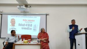 These views were expressed by Dr. Jawahar Karnavat, a scholar of global Hindi journalism and literature. He delivered a lecture on “Hindi Journalism on the Global Stage” at the Department of Journalism, Makhanlal Chaturvedi National University of Journalism and Communication, Bhopal, on 29 August. Dr. Karnavat has conducted in-depth research on Hindi journalism abroad. He presented compiled editions of newspapers and magazines published overseas and emphasized the need for thorough research on these publications.