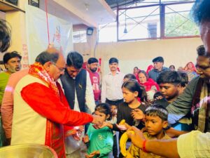 Under Ward 25 of the South-West Assembly constituency, at Booth 88, Rotary Club, aarti and prasad distribution were organized to celebrate Maharishi Valmiki Jayanti. Popular MLA Bhagwandas Sabnani performed garlanding and aarti on Maharishi Valmiki’s portrait and distributed prasad to the devotees present at the event.