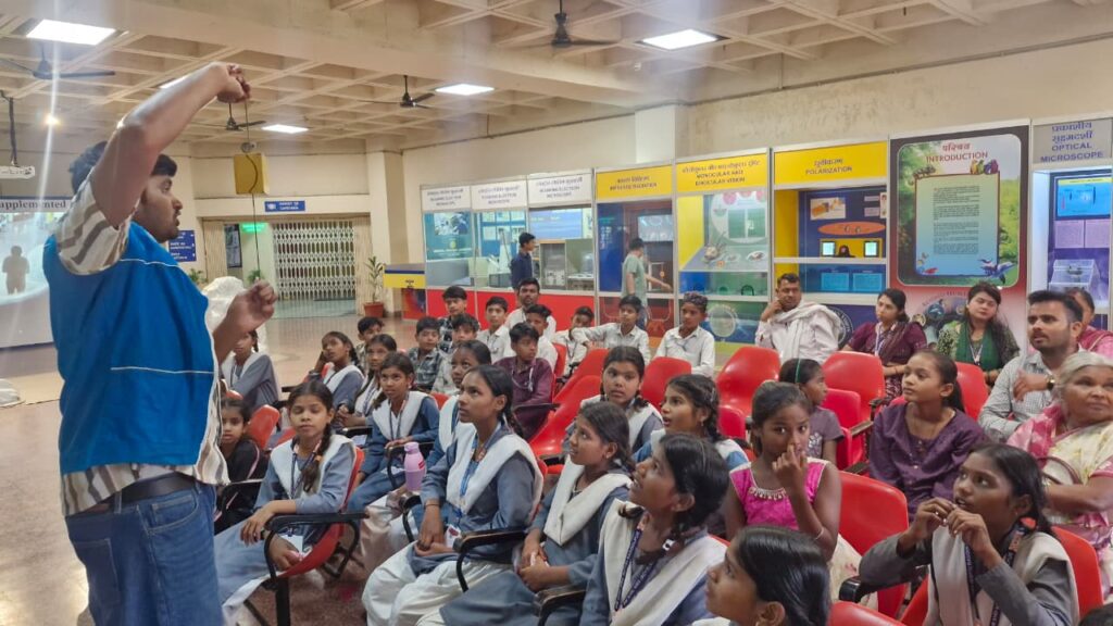 On the occasion of its 49th Foundation Day, the Regional Science Centre, Bhopal organized a variety of engaging and educational programs. Visitors enjoyed RAVSNP (NCSM) film shows, science demonstrations, daytime sky observation sessions, and walking science quizzes. These activities were designed to stimulate curiosity and interest in science, especially among students.