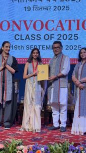 Director of NIFT Bhopal, Akhil Sahay, presented the annual academic report, emphasizing that a convocation marks the beginning of new professional and personal chapters, not the end of a journey. The Chief Guest, State Minister for External Affairs and Textiles, Pabitra Margerita, congratulated the graduates and highlighted the role of designers in preserving India’s craft heritage and strengthening its global presence. Special Guest, Shalini Jaykaria, Founder of Geisha Designs, inspired students to embrace originality and flexibility as core life values.