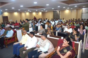 Prof. L.P. Jharia, the workshop coordinator, presented the program framework and emphasized a balanced inclusion of Indian and Western thinkers. Event secretary Sushil Manderia highlighted the global contributions of Indian knowledge traditions. The program was conducted by Ratan Suryavanshi, and the vote of thanks was delivered by Dr. Harshvardhan Singh Tomar.