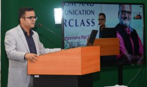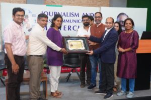 Former student and Commodity Editor at Zee Business, Mrityunjay Kumar Jha, shared practical insights on news writing. He said, “Whether content is 30 seconds long or 300 words in print, sharpness must be practiced during media studies. Common sense is crucial in journalism.” He emphasized that all journalistic work begins with writing, and reading is essential for effective writing; everything else can be learned.