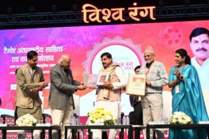 CNN Central News & Network–ITDC India Epress/ITDC News Bhopal: The second day of Vishwarang 2025 – Tagore International Literature & Arts Festival was a grand and thought-provoking event. The festival was inaugurated by Madhya Pradesh Chief Minister Dr. Mohan Yadav at Ravindra Bhavan. On the stage, Santosh Chaube, Director General of Vishwarang, the Vice-Chancellor of Rabindranath Tagore University, Vishwarang Director Dr. Aditi Chaturvedi Vats, and Dr. Arun Ramesh Joshi, Vice-Chancellor of CVRU Khandwa, were also present. During the inauguration, the Chief Minister emphasized that language and culture complement each other, and the purpose of literature is to spread joy and emotion. He highlighted the global recognition of the Hindi language and the sacred principle of “Live and Let Live” in Indian culture.