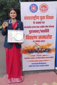 The state-level award is given to volunteers who have made extraordinary contributions to social service, community development, public awareness, and nation-building. On this occasion, Principal Dalima Parwani stated that Miss Neha Singh has set an example of service, discipline, and dedication. She added that this honor is not only a result of Neha’s individual efforts but also a symbol of the commitment and collective efforts of the college’s NSS unit.
